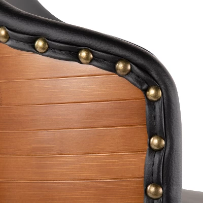 The Mid-Century charm of the Ahoy Counter Stool combines sturdy construction with aesthetic appeal. A walnut wood frame is accented by faux leather upholstery and stylish wood-pressed grain bamboo legs. The comfy padded seat if perfect for long conversations, or a quick morning breakfast. Available in a variety of color combinations, choose the one that suits your space best!