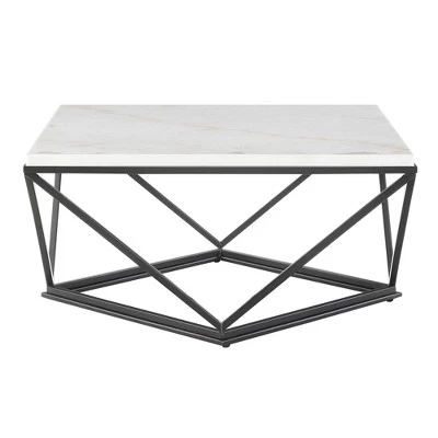 The Picket House Furnishings Conner 2pc Occasional Table Set is the perfect addition to your home! This dynamic duo includes a coffee table and an end table. This set features crisp, white marble table tops that pair beautifully with the black powder coated, metal legs. A cool, funky design element is the table bases; adding extra flair to this already stunning set.
