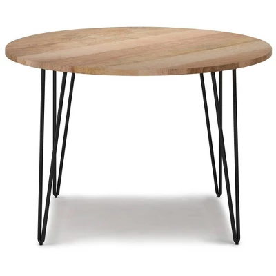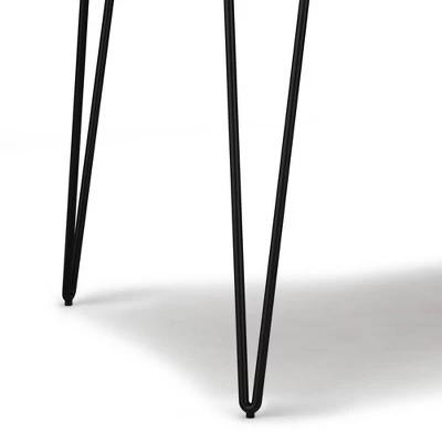 - Modern, Industrial design includes natural finished top , black metal frame and black hairpin legs
