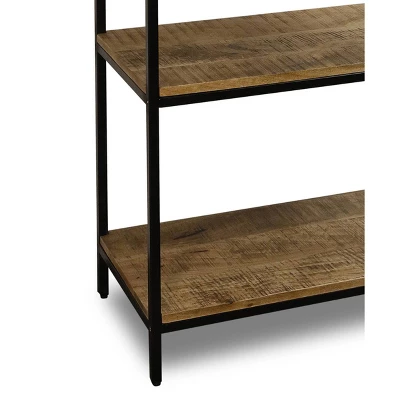 - This Bookcase Is Finished All Over In A Natural Chatter Cut Mango Wood Finish, With A Gun Metal Powder Coated Iron Frame & Legs.