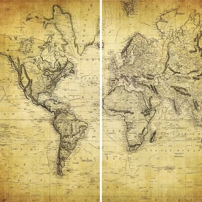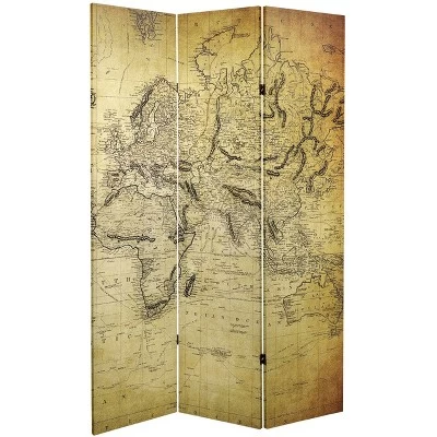 6″ Double Sided Vintage World Map Canvas Room Divider Beige – Oriental Furniture