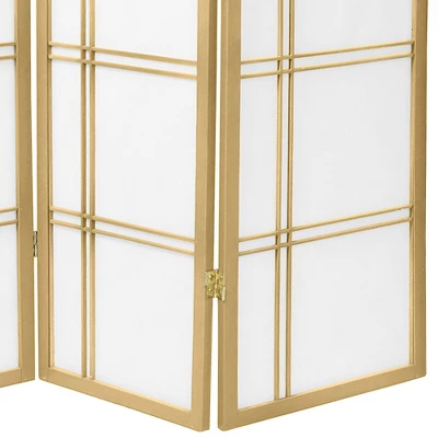 Bring home some glamorous class with this Tall Double Cross Shoji Screen in gold from Oriental Furniture. This five-panel shoji screen is the perfect solution, whether you want to separate your bed from your living space in a studio apartment or you want to tuck away a reading corner. Made of hardwood and metal, this screen makes for a durable divider and can be arranged however you like.