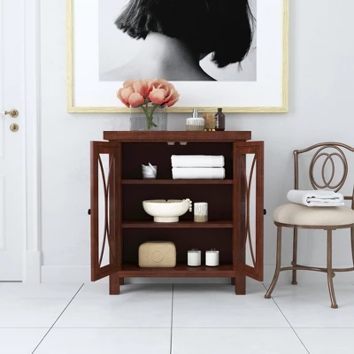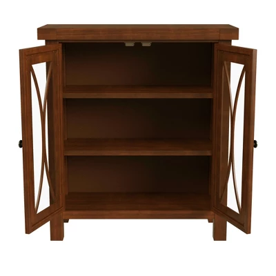 Storage and style take centerstage in the Hillsdale Furniture Bayside Two Door Cabinet. Its two glass pane doors feature a sweeping and curved X design, making this display cabinet a picturesque addition to any cottage or coastal interior design scheme. Behind each cabinet door, you’ll find removable shelves, so you can stowaway belongings of all sizes. Elegantly store and showcase your china, curios or other prized possessions with the Hillsdale Furniture Bayside Two Door Cabinet. Minor assembly required.