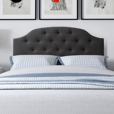 Complete your bedroom with this beautiful, foam padded upholstered headboard. A diamond button tufted design with soft lines and a smooth arched silhouette that will be sure to impress. Beautifully upholstered in a soft fabric, this versatile, low-profile headboard is equipped with easy-to-adjust legs to accommodate your bed and frame.