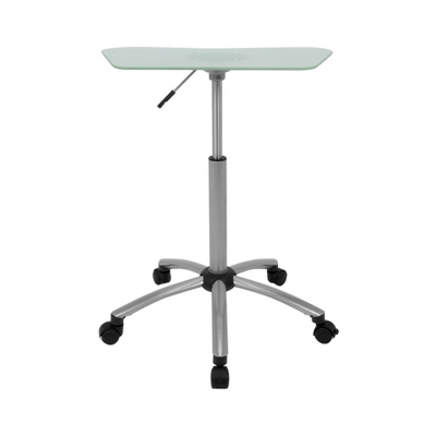 Create a mobile and customizable work station with this innovative Light Silver Computer Stand from studio designs. This wheeled computer stand features an adjustable-height base and a wide, glossy work surface that can be rotated 360 degrees to suit your creative needs. Five wheels with locking capabilities provide secure mobility and allow you to easily transplant this computer stand to any space in your office or home. In a gleaming silver finish that’ll fit seamlessly into your work space, this portable computer stand will take your productivity levels to entirely new heights.
