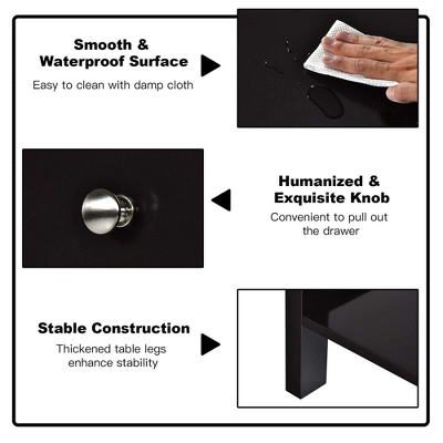 If you are looking for an attractive nightstand, our product will the best choice for you! This side table has a drawer for hidden storage and a tabletop for open storage, so there is ample space to store items. Besides, the nightstand is made of high-quality MDF and engineered wood, which is durable for a long-term use. In addition, humanized knob and smooth drawer slides let you pull out the drawer easily. This versatile table can be placed not only as a bedside table in the bedroom, but also as a side table next to the sofa in the living room. Simple and modern style makes this nightstand perfect for various home decoration design.