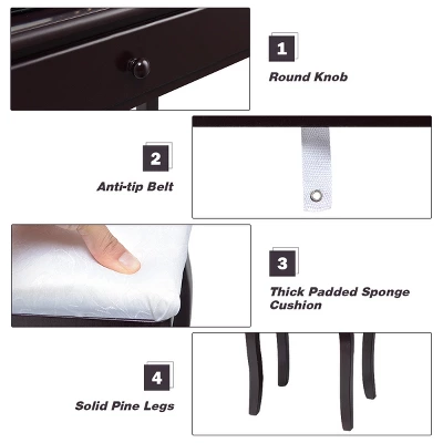 3 drawers provide ample storage space for your cosmetics and jewelry.