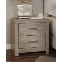Culverbach nightstand’s weathered driftwood finish evokes such an ethereal vibe-exactly what you need for your serene master suite. Clean lines and simple yet substantial hardware make for a timeless look you’ll love living with for years to come. Two spacious drawers offer ample storage for all the bedside essentials while the built-in USB ports make charging wireless devices a breeze. Signature Design by Ashley is a registered trademark of Ashley Furniture Industries, Inc.