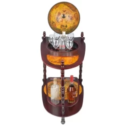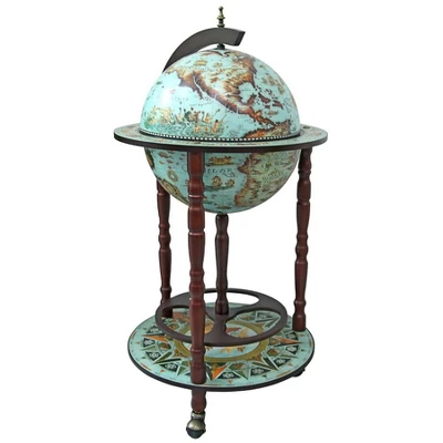Raise a toast to honored guests from a 14″dia. Italian-style globe bar ensconced in authentic parchment-printed, 16th century replica nautical maps from the National Museum of Science in Florence. Bursting with Old World charm, our functional work of art opens from a hinged meridian to reveal artistic interior frescoes reminiscent of domed ceiling contraspecto (“view from the heavens”). Our Toscano exclusive boasts secure spots to show off your treasured decanter bottles and collectible liquor and barware. A trio of handsome, turned hardwood legs rises from rolling casters and a circular lower shelf, allowing additional storage and a moveable liquid feast! Simple assembly required. 18.12;”dia.x36″H. 16 lbs.