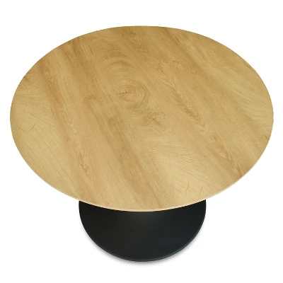 Introducing the Pop Maison sleek pedestal dining table, the perfect choice to add a touch of modern style to any space. Crafted with meticulous attention to detail, this round dining table features a steel base and a tapered pedestal, creating a sleek and contemporary look. The round top, made of durable engineered wood, provides a striking contrast.Designed with convenience in mind, this single pedestal dining table offers ample legroom for you and your guests, ensuring optimal comfort during meals and gatherings. Measuring 35″ in diameter, its spacious tabletop provides plenty of surface area for serving dishes and hosting memorable events.Whether you have a mid-century modern or contemporary kitchen or dining room, this table effortlessly complements your interior decor. Its versatile design and timeless appeal make it a must-have for those who appreciate both style and functionality.Experience the perfect blend of modern aesthetics and practicality with the Pop Maison sleek pedestal dining table. Elevate your space and create a welcoming atmosphere for unforgettable dining experiences.