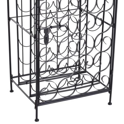 Love wine but don’t have the space for a full wine cellar? Let this HOMCOM large capacity ornate wine bottle organizer lend a hand. Ornate scrollwork with antique bronze finish evokes the artistry of the Renaissance, a fitting setting for your wine. A swirling, elegant iron front door opens onto 35 circular bottle cradles. This wine rack is compact and convenient and will easily fit in a home bar, kitchen, or living room.