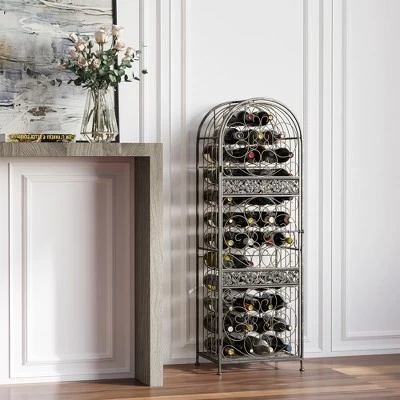 - HOLDS 45 BOTTLES: This fancy wine rack can store 45 standard Bordeaux bottles of wine or other beverages, creating ease of access in an aesthetically pleasing iron cage.