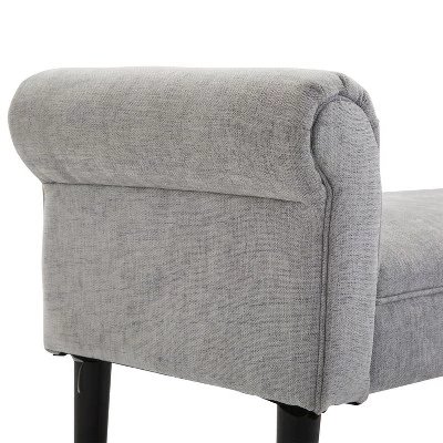 Spice up your interior with this stylish rolled vanity arm ottoman bench from HomCom, perfect for adding accenting detail to any bedroom, living room, or entry area. Covered in soft linen fabric, this accent bench has dark wood-like plastic legs and a plush foam-padded seating area. The straight line frame design is bookended by rolled sides, adding an elegant touch to this piece. Use it to enhance the decor of any room in your home.