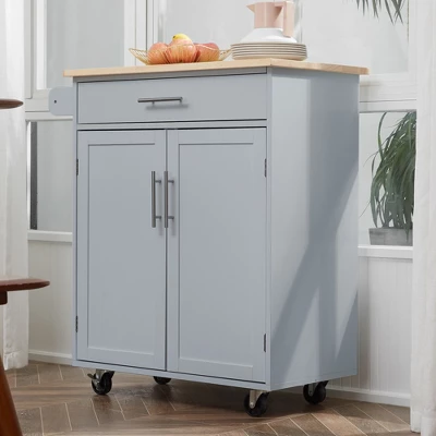 Win your kitchen back from clutter with HOMCOM kitchen cabinet island. Designed with functionality as it’s top priority, this kitchen island on wheels makes cooking much easier. With a large rubberwood countertop, you can effortlessly increase the work area of your space without sacrificing style. With a large drawer and plenty of cabinet space underneath the countertop, you can store dishes, bowls, cookware, and kitchen essentials away from other cramped storage areas.