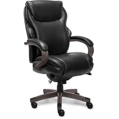 With high-end finishes like soft bonded leather upholstery and elegant wood detailing, the La-Z-Boy Hyland Executive Office Chair with AIR Technology is a statement chair for any traditional office space. The flexible AIR lumbar system pivots to provide back support whenever you shift. The adjustable height, recline and layered memory foam cushions will keep you cradled in comfort all day. The La-Z-Boy Hyland Executive Office Chair with AIR Technology is a luxurious addition to any workspace!