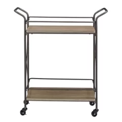 Raddatz Metal X Frame Bar Cart With Wood Shelf Bronze/Walnut – Inspire Q