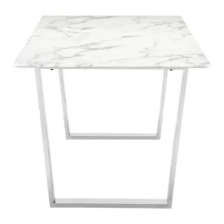 Modern Rectangular Faux Marble Dining Table – Stone, Brushed Stainless Steel – ZM Home