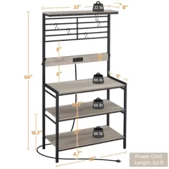 Yaheetech 4-tier 64″ H Kitchen Baker’s Rack With Power Outlet, Gray