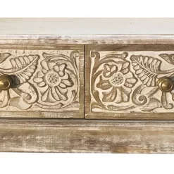 2 Drawer Mango Wood Console Table With Floral Carved Front Brown/White – The Urban Port