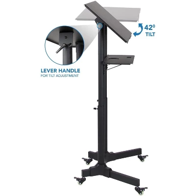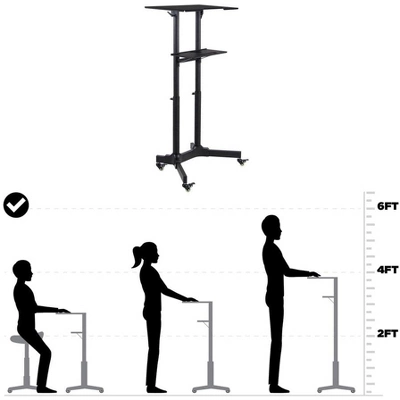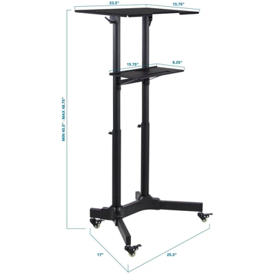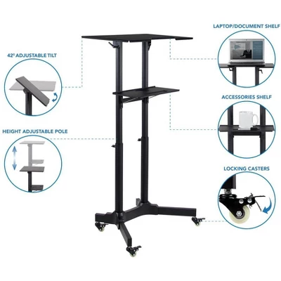- This height adjustable rolling workstation can be used as a mobile laptop cart, portable podium, or presentation lectern