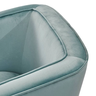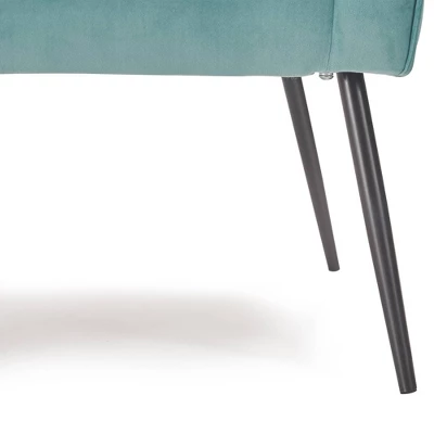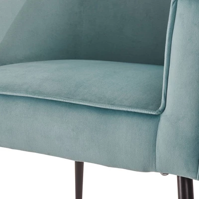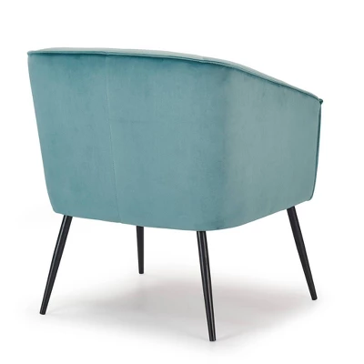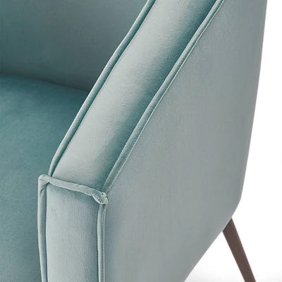 Enhance your living room decor with the chic styling and rich supple cushions of this comfy club chair. The sweeping flared arms add to the striking profile. You’ll appreciate the comfort and support the padded back provides. Stunning yet simple with its sleek piping and contemporary design approach. Plush velvet upholstery creates a fun focal point when used as a vanity chair, living room accent, or cute conversation set. The timeless tapered wood legs of this design will never go out of style.