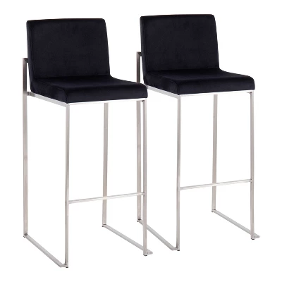 Set Of 2 Fuji High Back Stainless Steel/Velvet Barstools – LumiSource