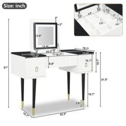 43.3″ Modern Vanity Table Set With Flip-Up Mirror, LED Lights And Storage – ModernLuxe