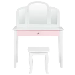 Costway Kid Vanity Table Set With Tri-folding Mirror 2-in-1 Makeup Dressing Table Stool Set