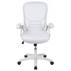 Emma And Oliver High Back White Mesh Ergonomic Office Chair With White Frame And Flip-up Arms
