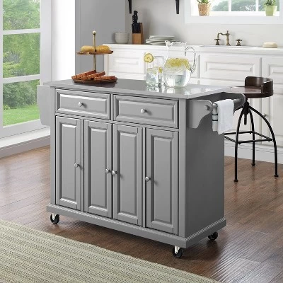 Constructed of solid hardwood and wood veneers, this mobile kitchen cart is designed for longevity. The beautiful raised panel doors and drawer fronts provide the ultimate in style to dress up your kitchen. Two deep drawers are great for anything from utensils to storage containers. Behind the four doors, you will find adjustable shelves and an abundance of storage space for things that you prefer to be out of sight. The heavy duty casters provide the ultimate in mobility. When the cabinet is where you want it, simply engage the locking casters to prevent movement. Style, function, and quality make this mobile kitchen cart a wise addition to your home.