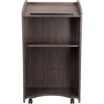 The 611 Vision lectern is truly a sight to see. This gorgeous, dynamic lectern is perfect for presenting in more intimate venues like classrooms and conference rooms. Its sleek cabinetry features scratch-resistant, wood laminate over a medium-density fiberboard (MDF) core with two sizeable 14.5″ x 23″ shelves for ample storage and four concealed easy-roll casters (two locking) for smooth mobility. Featured in ribbonwood laminate.